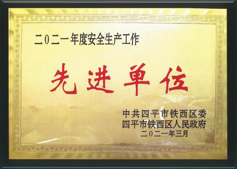 中共四平市鐵西區委四平市鐵西區人民政府評選四平市興平換熱設備制造有限公司為年度安全生產工作先進單位。